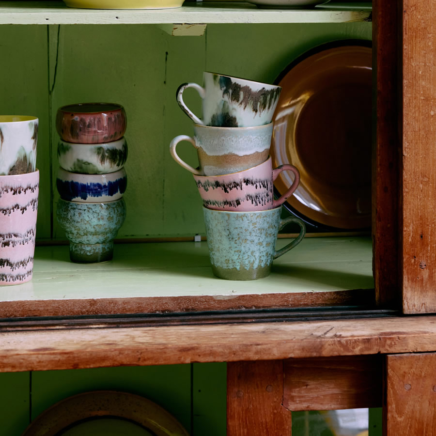 Die gesamte originelle 70’s Ceramics Serie von HKliving ist spülmaschinen- und mikrowellengeeignet sowie lebensmittelecht.