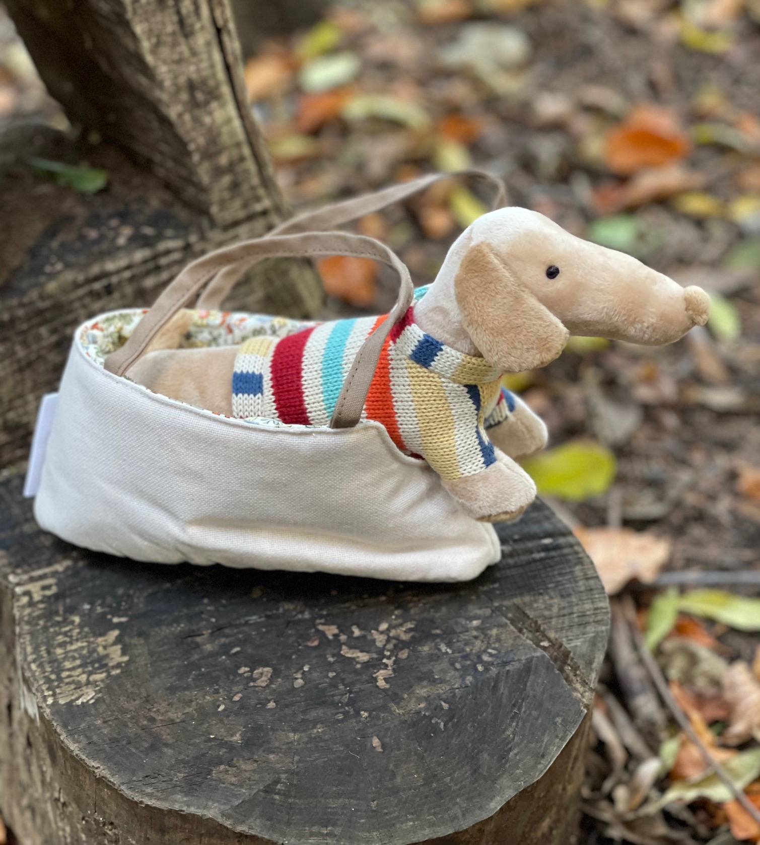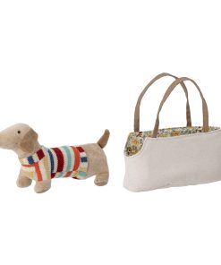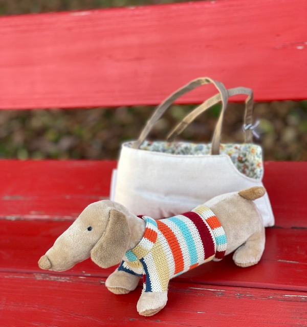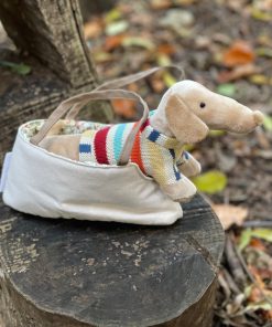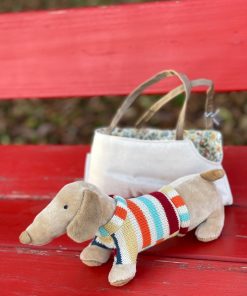 Das Kuscheltier Dackel Hilena mit Tasche von bloomingvilleMini liebt es, überallhin mitgenommen zu werden. Die Kinder können ihn in der praktischen Handtasche herumtragen und Hilena freut sich auf jeden Spaziergang. So kann er auch mit auf eine Reise gehen. Natürlich darf der kleine süße Dackel auch die Tasche verlassen und kann dann seinen niedlichen Streifenpullover stolz allen zeigen. Der Schmusehund ist kuschelig weich und wird schnell der beste Freund und Begleiter in guten und schwierigeren Kindertagen. Wenn er einmal lieber zu Hause bleiben möchte, kann Ihr Kind die Tasche auch für andere Sachen benutzen. Der Dackel Hilena mit Tasche von bloomingvilleMini ist ein tolles Spielzeug und ein wunderbares Geschenk zu allen Gelegenheiten.