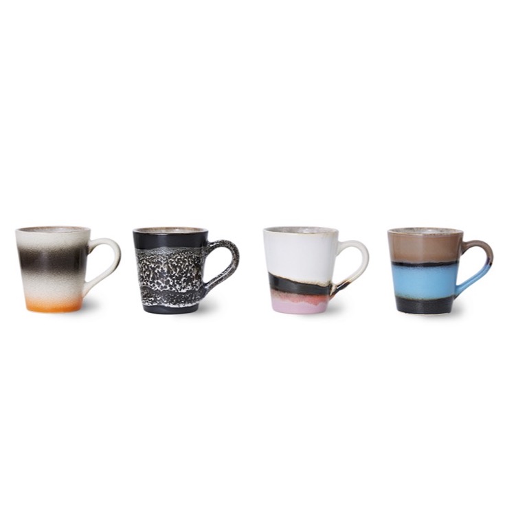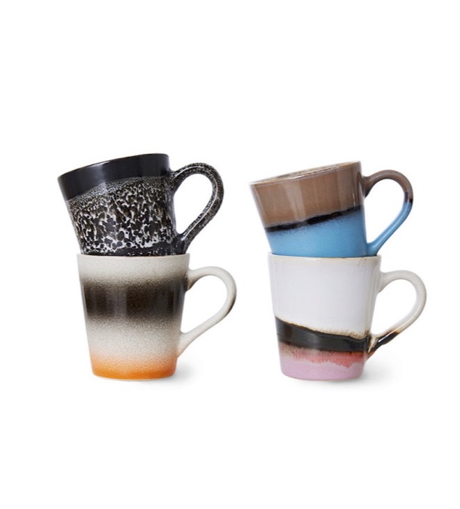 Mit den Espresso Mugs Funky von HKliving genießt du deinen Espresso stylish und deine Tischdeko bekommt einen retro-touch. Die 70’s Espresso Tassen aus Steingut sind einzigartig, da sie von Hand glasiert werden, jede fällt ein wenig anders aus und ist ein Unikat. Mit den extravaganten Espresso Tassen der 70er Jahre liegst du voll im Trend. Die Espresso Mugs Funky von HKliving bestehen aus Steingut und sind handgefertigt. Die Tassen überzeugen durch das Zusammenspiel von hellen und dunklen Farbtönen und lassen sich wunderbar kombinieren.