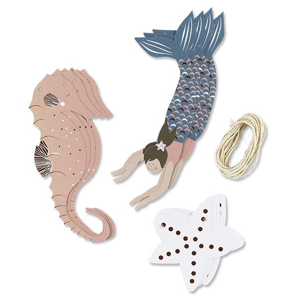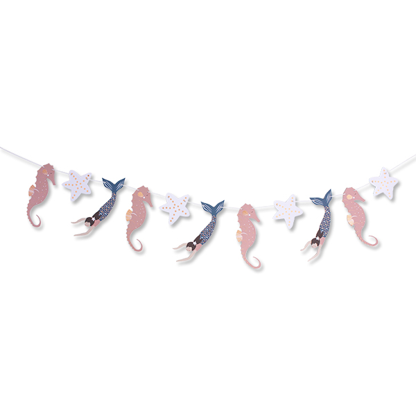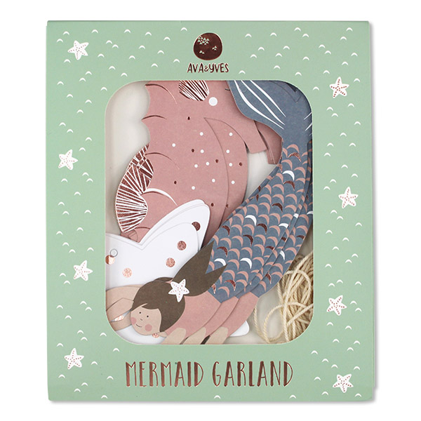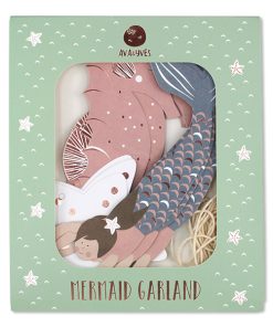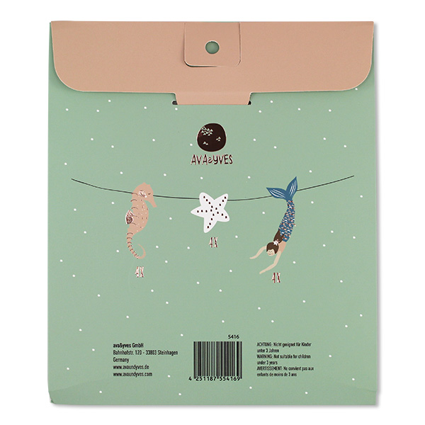 Die Girlande Meerjungfrau von AVA&YVES mit den schönen Motiven einer Meerjungfrau, Seepferdchen und Seesternen schmückt jedes Kinderzimmer. Hängen Sie die Girlande über das Bett oder an die Wand, ans Fenster oder wo immer Sie einen schönen Platz dafür finden. Auch bei Geburtstagsfeiern, Kinderpartys oder im Sommer draussen ist die Girlande ein dekoratives Accessoire. Die kids werden diese schmückende Girlande mit den schönen Motiven und fröhlichen Farben lieben. Die Girlande Meerjungfrau von AVA&YVES ist immer ein schönes Geschenk für ihre Sprösslinge in der Familie oder im Bekanntenkreis.