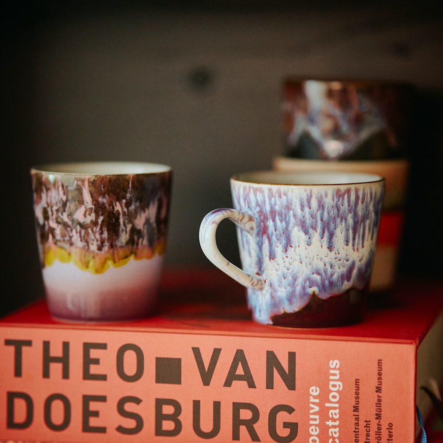 Der Kaffee Becher Blast von HKliving für deinen absoluten Favoriten – der altmodische Drip, der trendige Americano oder der perfekte Slow Coffee. Die Kaffeebecher haben ein Fassungsvermögen von 230 ml, also mehr als genug, um deine geliebte Tasse zu füllen. Dank der erdigen Elemente und natürlichen Farben ist dies die entspannteste Serie in der Retro-Keramikkollektion der 70er Jahre. Die spannenden Farbkompositionen der Kaffee Becher Blast von HKliving und die strukturierten, handveredelten Oberflächen machen jedes Stück zu einem Unikat.