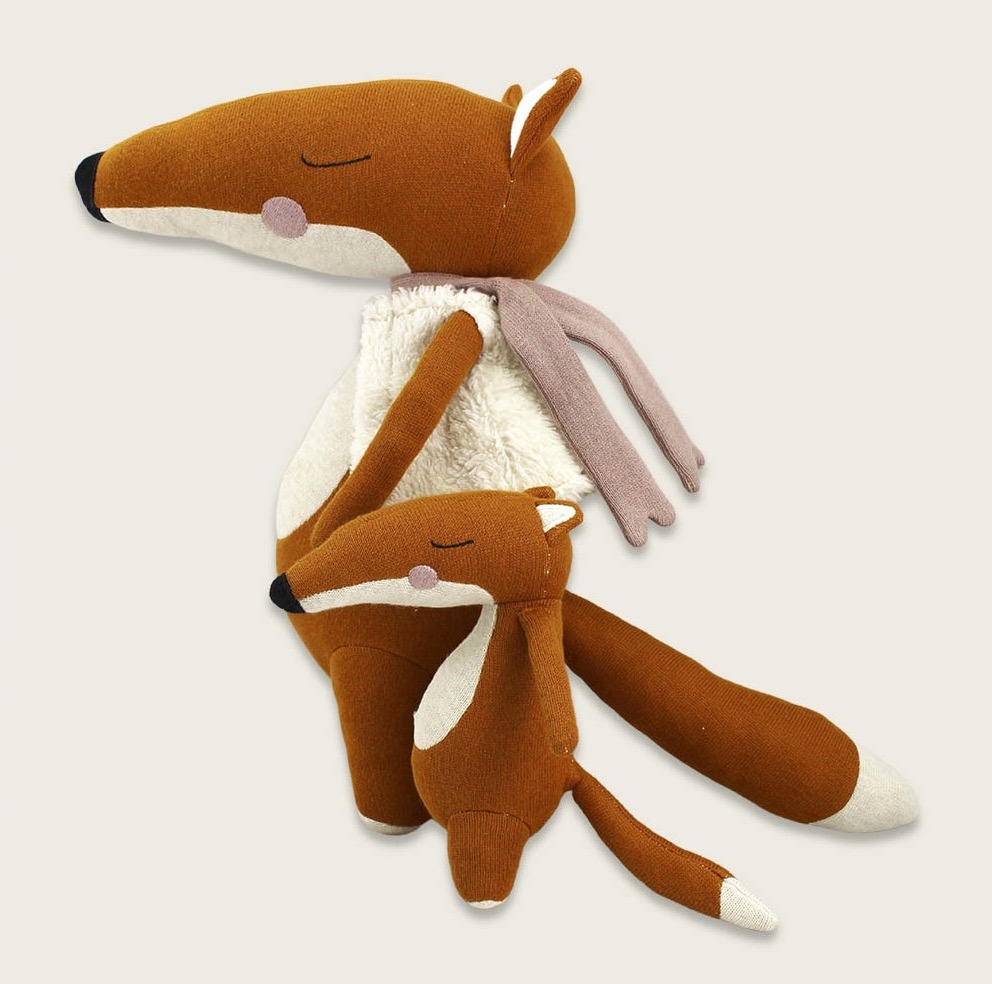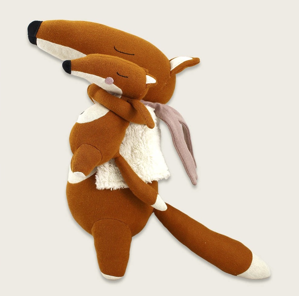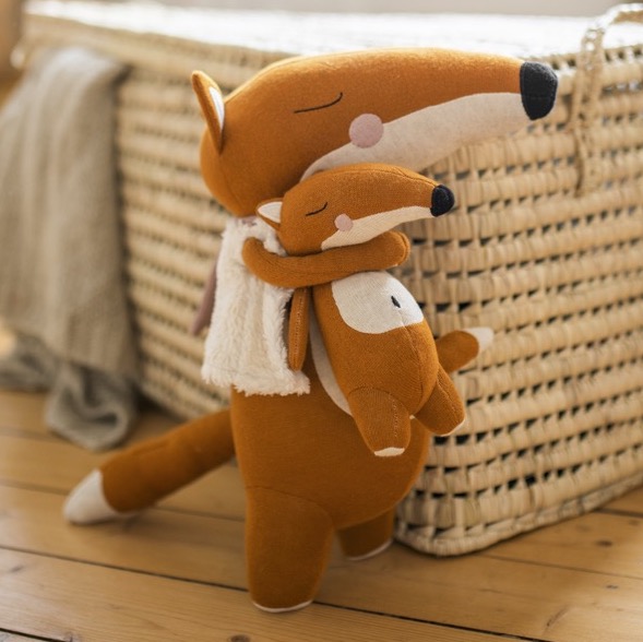 Das süsse Kuscheltier Fuchs mit Baby von AVA&YVES ist ein treuer Spiel- und Kuschelgefährte. Es ist fein gestrickt aus 100 % Bio-Baumwolle. Der Fuchs mit seiner kuscheligen Weste und dem rosa Schal hält sein Baby ganz vorsichtig im Arm an sich gedrückt- er ist einfach zum Verlieben. Das Kuscheltier Fuchs mit Baby von AVA&YVES ist zuckersüß und wird deine und die Herzen der kids erobern. Die beiden machen sich auch sehr dekorativ auf dem Sofa und im Bett und sind ein tolles Geschenk für Jungen, Mädchen und natürlich auch erwachsene Fuchsliebhaber. Sie sind lieb, zahm und gut erzogen und hübsch dazu. Sie sind auch ein prima Geschenk zur Einschulung und begleiten ihren Menschenfreund oder Freundin gerne durch die Schulzeit.