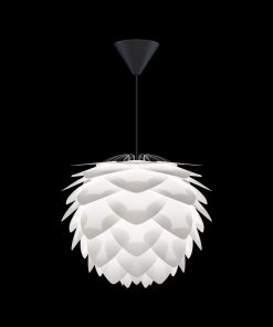 Der Lampenschirm Silvia Mini Weiß von UMAGE erzeugt Licht auf eine ganz besondere Weise, denn das Licht strahlt nicht nur durch die übereinander angeordneten Lamellen, sondern wird durch die einzelnen Zwischenräume auch noch nach oben und unten reflektiert. Diese charakteristische Lampe ist ein moderner Klassiker und bringt nicht nur Licht, sondern auch Wärme in dein Zuhause. In klassischem Weiß gehalten lässt sich der Lampenschirm Silvia Mini Weiß von UMAGE zu jedem Wohnstil kombinieren und ist mit seiner einzigartigen Lichtwirkung immer ein optisches highlight. Die dreieckigen Lamellen sind aus einem unzerbrechlichen Kunststoff gearbeitet. Kombiniere diesen Lampenschirm mit einer Rosette abgestimmt in Weiß oder kontrastig in Schwarz, beide Farben sind auch hier im shop erhältlich.