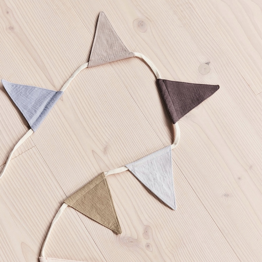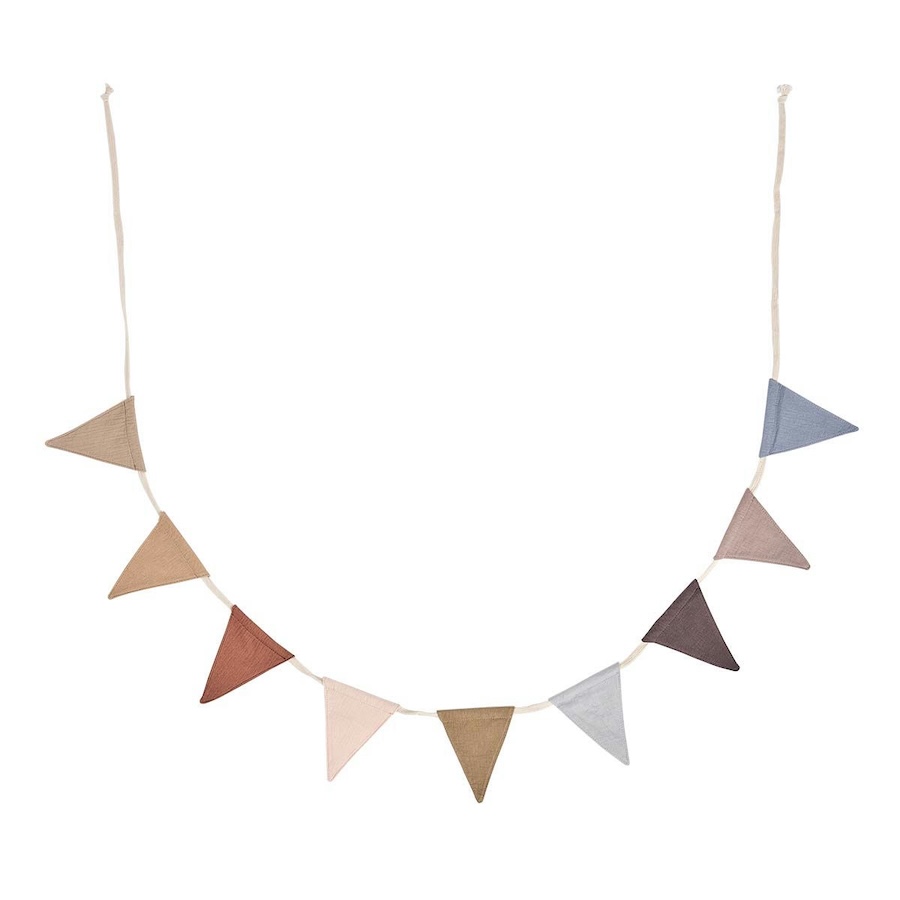 Die festliche Moni Muslin Girlande in Beige von OYOY ist mit Sorgfalt aus Bio Baumwolle gefertigt und besteht aus einer Reihe weicher und leichter Musselin-Dreiecke in verschiedenen verspielten Farben. Jedes Dreieck ist sorgfältig genäht und so gestaltet, dass es beim Aufhängen einen atemberaubenden Anblick bietet. Die Kombination lebendiger Farbtöne schafft eine festliche Atmosphäre und eignet sich perfekt für Geburtstage, Babypartys, Feiertage oder andere besondere Anlässe.