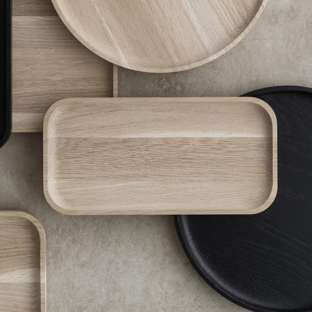Machen Sie Servieren zum Highlight und lassen Sie Ihrer Kreativität in Sachen Tischdekoration freien Lauf. Die vielseitige Serie OKU eignet sich nicht nur hervorragend um Ihre Speisen perfekt in Szene zu setzen, Sie können diese auch als dekoratives Accessoire beispielsweise auf Ihrem Sideboard verwenden. Die Tabletts sind sowohl in verschiedenen Formen, Größen als auch Farben erhältlich, sodass Sie sich dank des zeitlosen Designs ideal in Ihre Wohnräume einfügen und jedem Ihrer Ansprüche gerecht werden. Die Tabletts bestehen aus FSC zertifizierter Eiche und können mit einem feuchten Tuch gereinigt werden.[/vc_column_text][vc_row_inner][vc_column_inner width=“1/2″][vc_column_text css=““ css_params=““]Highlights: