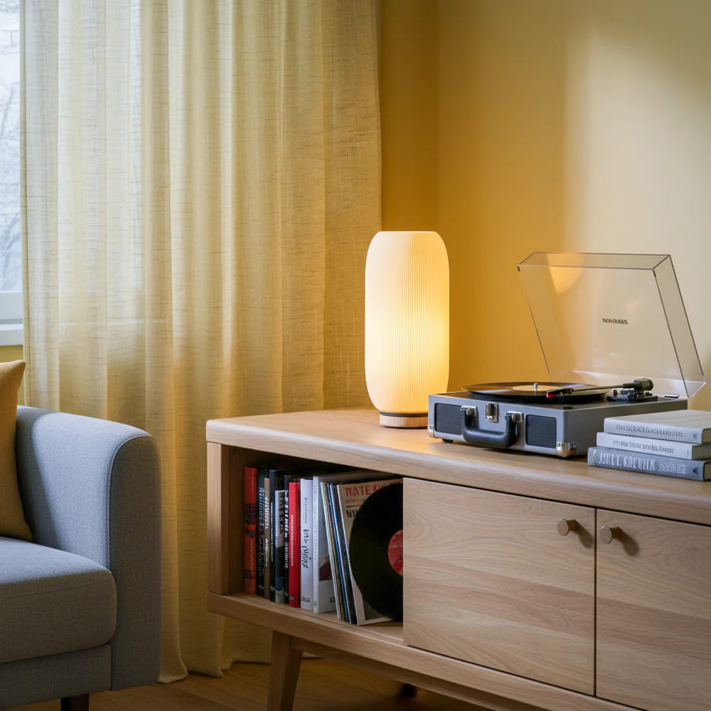 Genau so sicher kann man sich sein, dass wir bei der Materialauswahl höchsten Wert auf die Qualität der einzelnen Komponenten gelegt haben. Ein solider Holzfuß aus europäischem, in Handarbeit weiß geölten Buchenholz legt die Basis für einen ausgeklügelten magnetischen Rastmechanismus. Darauf ruht ein Lampenschirm aus biologisch basiertem Kunststoff, der unverwechselbar weiches Licht spendet. Und das auf Knopfdruck des Kippschalters am ultra-soften Kabel aus Italien.