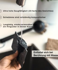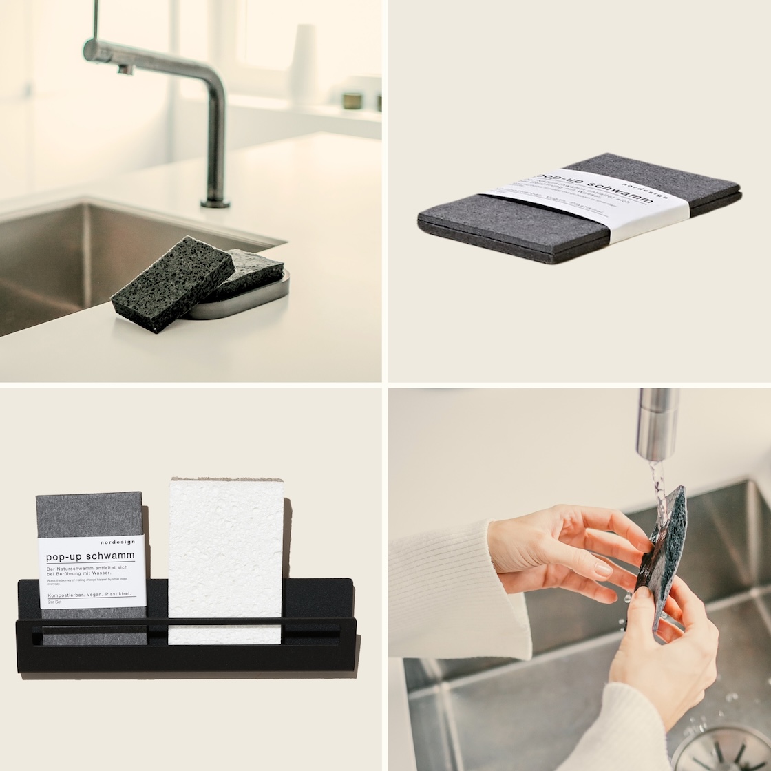 Der Pop Up Schwamm von nordesign vereint Funktionalität, Nachhaltigkeit und Design für dich und stellt eine natürliche Alternative zum herkömmlichen Küchenschwamm aus Kunststoff dar. Bringe Bedeutung ins kleinste Detail und gehe verantwortungsvoll mit unserem Planeten um. Der Pop-Up Effekt bei der ersten Berührung des Schwammes mit Wasser ist ein Erlebnis. Einmal aufgegangen, kann der Pop-Up Schwamm universal für die sanfte Reinigung eingesetzt werden. Der schlichte schwarze Schwamm ist ein Must-Have für jeden modernen und nachhaltigen Haushalt, sehr cool fügt er sich in deine Küche ein und kann, wenn er einmal nicht mehr zu gebrauchen ist, einfach kompostiert werden. Der Pop Up Schwamm von nordesign besteht zu 100% aus nachwachsender Holz-Zellulose. Er ist im Doppelpack attraktiv verpackt in einer Papierbanderole und auch ein schönes Geschenk. Kombiniere den Schwamm mit dem schwarzen Spültuch und dem Coconut Sponge von nordesign, die auch hier im shop erhältlich sind.