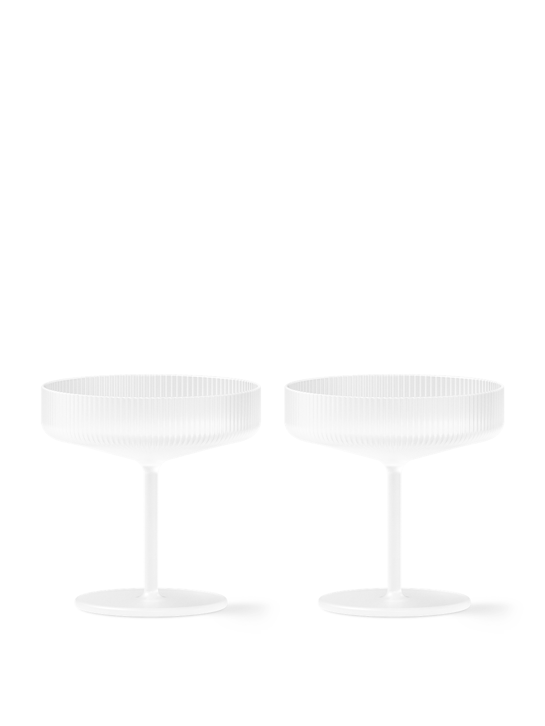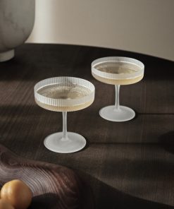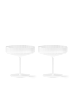 Die Ripple Champagnerschalen Frosted im Set von ferm LIVING mit ihrer wunderschön geriffelten Oberfläche sind klassische Schaumweingläser. Die edlen Gläser sind eine gelungene und ausgefallene Abwechslung zu Standard Gläsern. Man fühlt sich zurückversetzt in die 20er Jahre, zu Gast auf einer opulenten Gartenparty. Die Gläser werden von Mund geblasen und kunstvoll verarbeitet, sodass ein guter Champagner oder Sekt stilvoll genossen werden kann. Sie heben den sprudelnden Geschmack von einem guten Tropfen optimal hervor. Die Ripple Champagnerschalen Frosted im Set von ferm LIVING sind anmutende Gläser mit filigraner Optik, die jeden besonderen Anlass aufwerten. Die Mattglas-Serie von Ripple verleiht unserer klassischen Ripple-Gläserkollektion einen ruhigen, modernen Touch. Die von erfahrenen Handwerkern mundgeblasenen Stücke behalten die charakteristische geriffelte Oberfläche und die geometrischen Konturen bei und präsentieren sich jetzt in einer wunderschönen Mattglasvariante. Diese neue Farbgebung hebt die einzigartigen Merkmale jedes einzelnen Stücks hervor und verbindet traditionelle Handwerkskunst nahtlos mit modernem Design. Dieses Set aus zwei Champagnerschalen eignet sich perfekt, um auf besondere Momente anzustoßen. Du kannst darin auf elegante Weise Schaumwein, edle Cocktails oder auch kreative Desserts servieren.