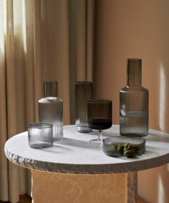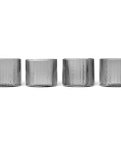 Die Ripple low glasses grau von ferm LIVING sind Teil der Ripple Glas Kollektion, die mit ihrer geriffelten Oberfläche eine moderne und dynamische Optik bietet. Die praktischen und schönen Gläser in der Farbe smoked grey werden aus mundgeblasenem Glas hergestellt. Die geriffelte Oberfläche der Ripple low glasses grau von ferm LIVING ist nicht nur optisch sehr ansprechend, sie ermöglicht zusätzlich einen sicheren und rutschfesten Griff. Das Set besteht aus vier Gläsern und jedes einzelne davon weist die unverwechselbare Verwendung von geometrischen Ebenen auf, die für diese Serie so charakteristisch sind. Vervollständige deinen Trinkgenuss mit der passenden Karaffe von ferm Living oder kombiniere sie mit anderen Stücken aus der Ripple-Glaskollektion.