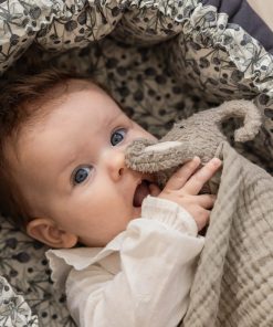 Das Schmusetuch, welches als Finley der Elefant gestaltet ist, überzeugt durch seine hochwertige Verarbeitung und der durchdachten Lösung. Der Kopf von Finley besteht aus zertifiziertem Bio-Baumwollplüsch, während der Körper aus besonders weichem Bio-Musselin gefertigt ist. Finley hat Maße von 35 x 35 cm.