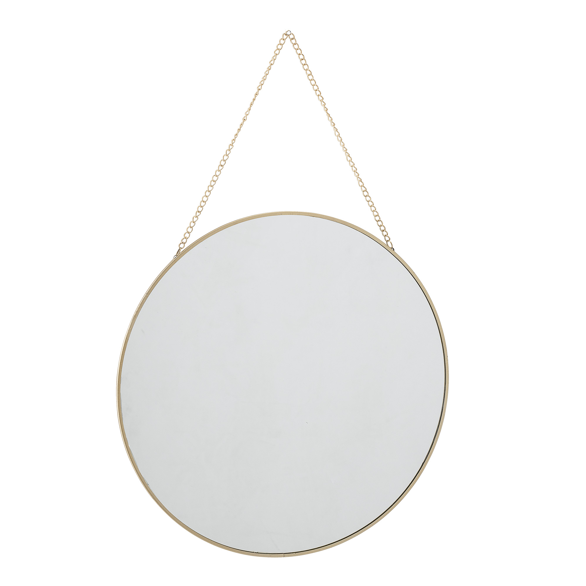 Dieser schöne Spiegel Sibal Gold von BLOOMINGVILLE ist mit seinem goldenen Rahmen und der hübschen Kette ein Schmuckstück. Der Spiegel schafft warme, goldige Akzente und vergrößert Räume optisch. Er paßt in jeden Raum, macht sich gut im Flur, im Bade- und Wohnzimmer aber auch im Mädchenzimmer ist er sehr dekorativ. Runde Spiegel eignen sich besonders gut als minimalistische, verspielte aber auch zweckdienliche Wandspiegel. Er ist flach gearbeitet und wirkt dadurch filigran und sehr dekorativ. Er hat skandinavischen Charme und ist deshalb nicht nur ein praktischer Spiegel sondern auch ein schönes Dekorationsobjekt.