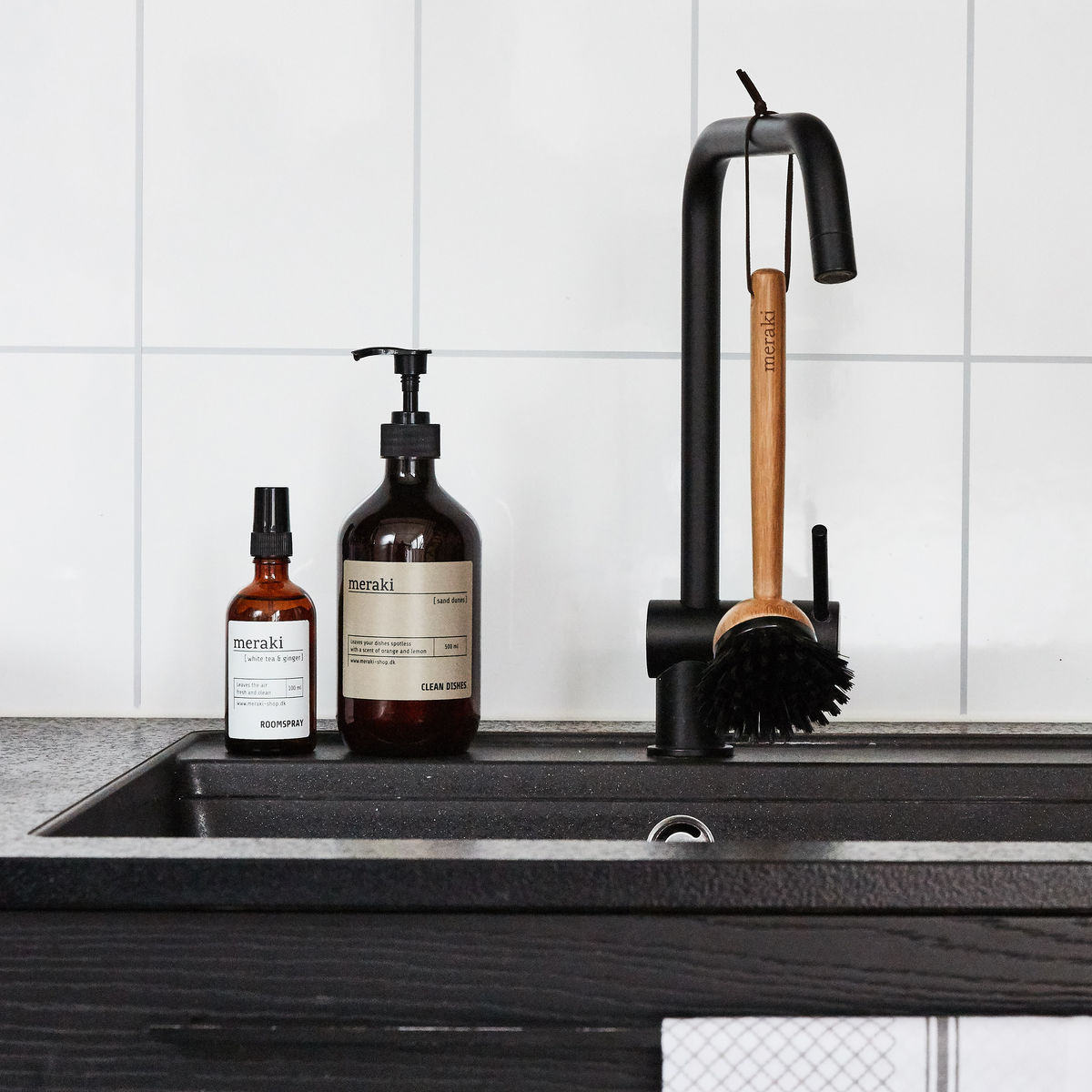 Die Spülbürste Dish Brush von MERAKI verfügt über eine Schlaufe, mit der sie an einem Haken oder dem Wasserhahn einfach aufgehängt werden und gut trocknen kann.