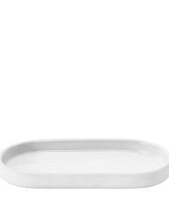 Weiche Kanten, eine schmeichelnde Form und dazu die angenehme Soft-Touch Oberfläche – mit dem Tablett Sono von BLOMUS im eleganten Farbton White kreierst du deine eigene Wohlfühloase! Es bietet Platz für Seifenspender und Zahnputzbecher, kann aber auch als Ablagefläche für Hygieneartikel & Co. benutzt werden. Innen ist die Ablageschale glasiert und lässt sich leicht reinigen.