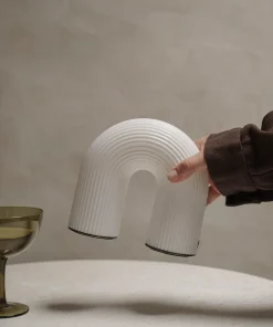 Mit ihrem skulpturalen Bogen, der an antike Säulen erinnert, spiegelt die Vuelta Mobile-Lampe den unverwechselbaren Stil der Vuelta Serie wider. Diese kompakte Beleuchtungslösung wurde im Hinblick auf Mobilität entwickelt und zeichnet sich durch handgefertigte Qualität und eine robuste Kunststoffkonstruktion aus, was sie zu einem außergewöhnlich vielseitigen Produkt macht. Die Leuchte vereint gekonnt Funktionalität und Design und verfügt über ein LED-Leuchtmittel, das ein sanftes, diffuses Licht emittiert, sowie über einen einstellbaren Dimmschalter für die Steuerung des Ambientes. Diese mobile Lampe ist eine in jeder Umgebung vielseitig einsetzbare Ergänzung, die sich perfekt als sanftes Nachtlicht für das Kinderzimmer oder als subtiler Akzent zur Beleuchtung einer dunklen Ecke eignet.