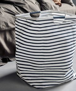 Schluss mit unansehnlichen Wäschehaufen! Der Wäschesack HDCanva von House Doctor ist die elegante Antwort auf das Thema Wäscheaufbewahrung. Das klare, skandinavisch inspirierte Design mit den markanten Schwarz-Weiß-Streifen überzeugt nicht nur optisch, sondern auch funktional: